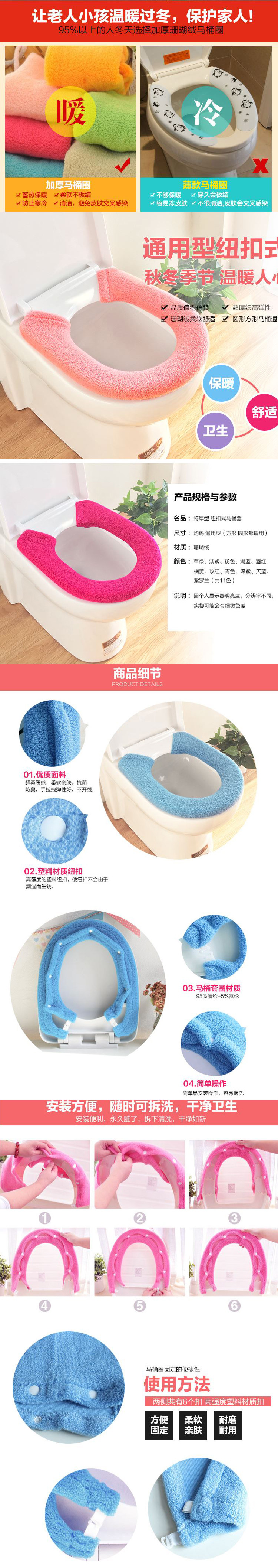 马桶垫坐便垫 通用型方形O型U型 纽扣式加厚毛绒厕所坐便套马桶套