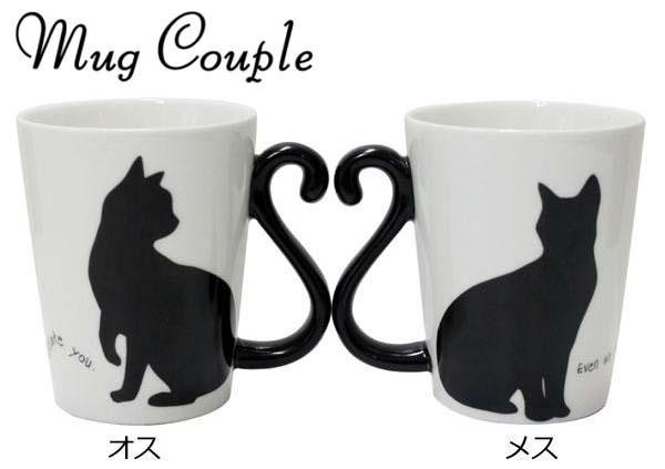 クールでキュートなペアマグカップ♪背景のデザインがシンプルなので、猫のシルエットが引き立ちます。