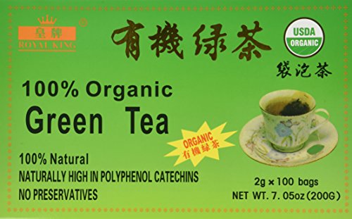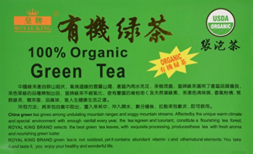 -. Binding : Health and Beauty -. Brand : Royal King -. Feature : 100% Natural / No preservatives / Caffeine Free -. Label : Royal King -. Manufacturer : Royal King -. ProductGroup : Health and Beauty -. ProductTypeName : HEALTH_PERSONAL_CARE -. Publisher : Royal King -. Studio : Royal King -. Title : Royal King 100% Natural Organic Green Tea (100 tea bags x 2g each)