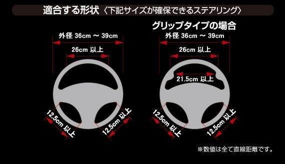 純正ステアリングの上から貼り付けるだけの簡単装着!グリップタイプのステアリングも装着OKで幅広いお車に対応可能。一部装着できないお車もあります。