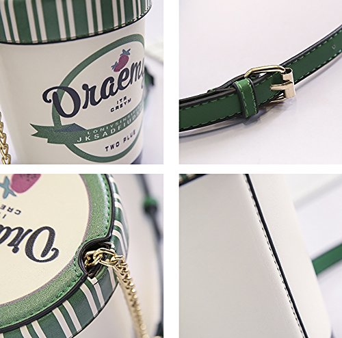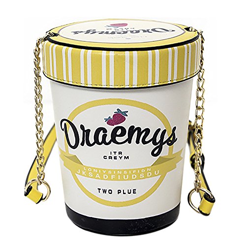 -. Feature : MATERIAL - High quality PU Leather / DIMENSIONS - 5.11"L x 3.93"W x 6.69"H; Chain-Strap Length:47.2" / INTERNAL - Inner has enough storage for your cell phone, lipstick, cash and credit cards and other small items / FEATURES - Exquisite and unique ice cream cup shaped, chain-strap design, can act as handbag, shoulder bag, cross-body bag / DELIVERY TIME - Free shipping by USPS delivery in 5-10 working days if you choose Standard Shipping Service.