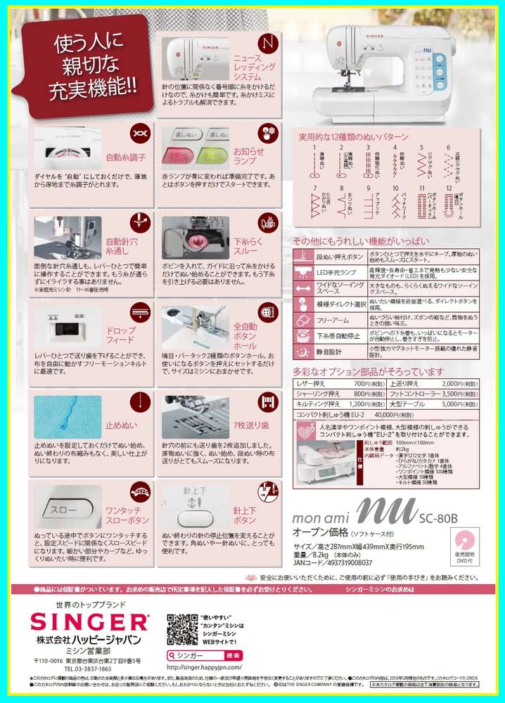 ●厚物ぬいに強く、ぬい始め、段ぬい時の布送りがとてもスムーズになります。