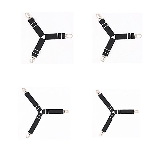 Package Include 4pcs/set Black High Quality Adjustable Bed Sheet Corner Holder Elastic Straps Fasteners Clips Grippers Mattress Cover Suspenders, Nickel Plated Clamps with Fabric Protector, tablecloth clips;fitted sheet holder,bed sheet holder straps,bed sheet corner clips grippers straps,adjustable elastic sheet straps grippers,sheet fasteners;Sheet suspenders hold all sheets on any and all mattresses tight