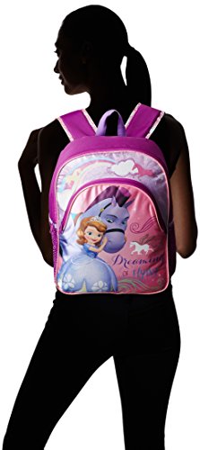 -. Binding : Apparel -. Brand : Disney -. Department : girls -. Feature : Adjustable shoulder straps / Locker loop / Measures 16 inch height x 12 inch width x 5 inch depth / Side mesh pockets / Padded back / Pockets: 3 exterior -. Label : Global Design Concepts - Girls Accessories -. Manufacturer : Global Design Concepts - Girls Accessories -. Model : SA26411-SC-PU -. PackageQuantity : 1 -. ProductGroup : Apparel -. ProductTypeName : LAGE -. Publisher : Global Design Concepts - Girls Accessories -. Studio : Global Design Concepts - Girls Accessories -. Title : Disney Girl's Sofia The First and Horse Backpack