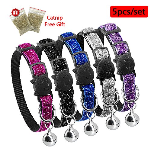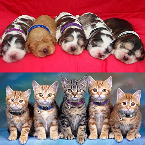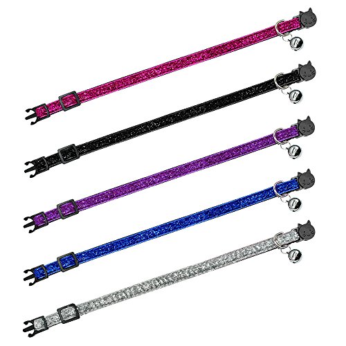 Beirui 5 pcs Nylon Dog Cat Adjustable Breakaway Collar with Bells - Quick Release Safe Buckle Cat Collar - Cute Flower Rainbow and Dots Puppy ID Collar - Neck for 8-12" ----Colorful---- Black,Blue,Purple,Hot Pink and Sliver