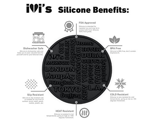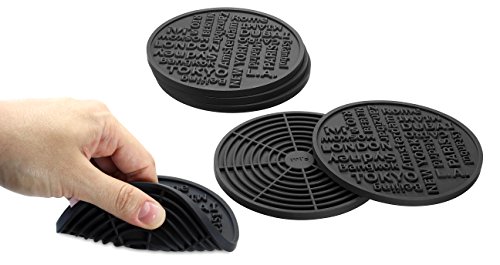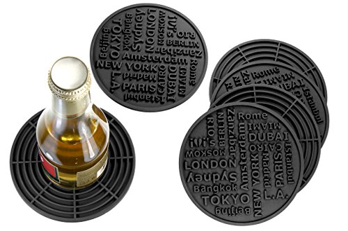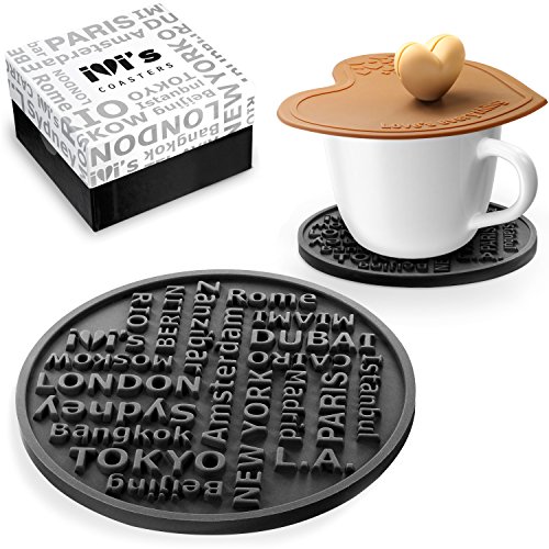 -. Feature : SILICONE DRINK COASTERS WITH A UNIQUE INNOVATING URBAN DESIGN - Our passion for quality and great design will be found in our carefully crafted silicone coasters. We created our silicone drink coasters bearing in mind our costumer's satisfaction and we bring them added value with the convenient carry bag and also with the included leak proof cup lid with beautiful heart design. illi's silicone drink coasters are packed in a nice gift box and can represent the perfect gift for your friends too! / GREAT VALUE, MULTIPURPOSE - illi's Silicone Drink Coasters are base support for any type of glasses, for cups, mugs or for bottles. You can use this silicone coasters in your kitchen as a support for your cooking utensils, for plates, bowls, or to open jar lids. This coasters can be used for your outdoor events by putting it on top of your beverages to protect it from dust or insects. illi's coasters can be used like a travel dream-chart due to it's design which invites you to Dream Big! / PREMIUM LONG LASTING SILICONE COASTER - These modern silicone drink coasters are dishwasher safe, the silicone being of very high quality, durable, 100% food grade, FDA Approved. The innovative design of the coaster is created so that the product has the functionality of a tray with the outer edge taller than the embossed interior design. The tray collects all the excess moisture and condensation from glasses and bottles coming in contact with the coaster. / BEST PROTECTION FOR FURNITURE FROM STAINS AND MARKS - Our high quality silicone drink coasters are perfect designed in order to protect bar furniture from liquid stains or from scratching. The back side has a good grip on any type of surface. illi's silicone drink coasters can make your life easier and helps you to save energy, time and money. Enjoy with your beloved ones your favorite beverages and forget about liquid stains on the furniture!