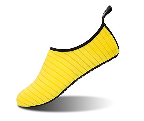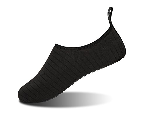 -. Feature : PROTECTIVE OUTSOLE: Anti-slip rubber outsole ensures safety and protects the feet from sharp and hard points when walking playing in the unknown slippery rocky surface and beach / COMFY UPPER: Compression upper is breathable and drains the water quick make the water shoes quick-dry and perfectly suitable for all kinds of water sports / BAREFOOT DESIGN: Ergonomic soft lightweight design feels like comfortable barefoot yet protects the feet well / CONVENIENCE&STAY: Smooth stretchy neck like socks prevents chafing and sand making it flexible and easy to put on but stay on feet comfortably firm / OCCASION: Suitable for indoor house wearing, gym exercise, yoga, dancing, diving, pool swimming, drifting, rafting, canoeing, water park, water sports