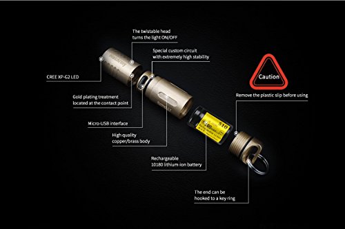 MecArmy Illuminex 3 130 Lumen Super Mini Rechargeable LED Keychain Flashlight with Micro USB Interface (Copper)
