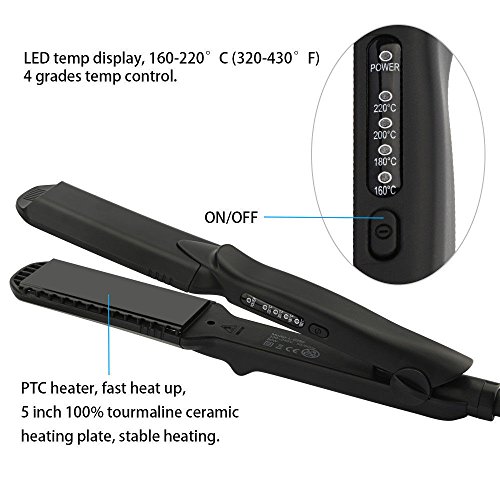 1.5-inch 100% ceramic tourmaline heating plate, heating evenly; PTC heater, fast heating up, steady heating, hard & wearable, LED temp display temperature, negative ion hair care