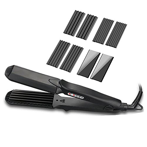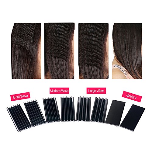 4-in-1 Interchangeable Plates Hair Styling Crimping Tool: L wave plate, M wave plate, S wave plate and flat plate, and it has prevent burns design function. Multi-functional hair styling tool, straight & curl corrugated wave, you can make different hair style everyday