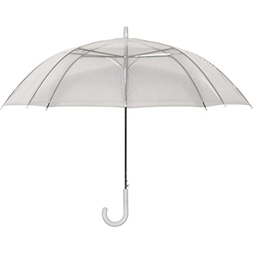 Product DescriptionClear Umbrella With White Trim Manual Open Umbrella Reinforced Steel Ribs Durable Plastic Handle Canopy Diameter: 39" Length 33"0