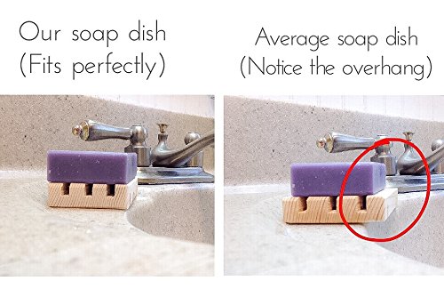 Two pack pine soap dish. Place one in your shower and one on your sink. Our wooden soap dish is custom made to fit our soaps exactly, it's small size makes it fit perfectly on your sink or in your shower without extra overhang like most soap dishes.
