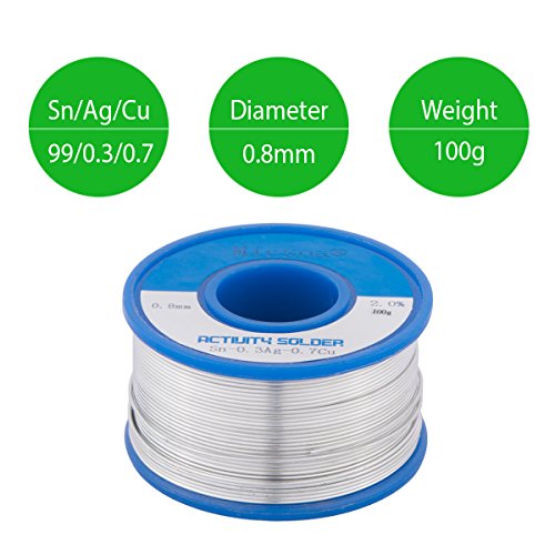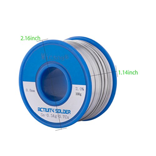 Micsoa Lead Free Rosin Core Active Solder Wire,Smoke Free Flux Core Welding Wire, 0.03inch, Sn99 Ag0.3 Cu0.7,Flux: 2% (3.5oz)