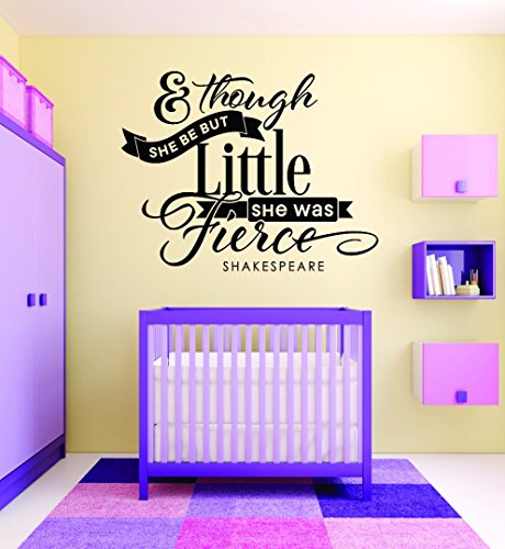 Design with Vinyl RAD 713 2 & Though She Be But Little She Was Fierce Shakespeare Quote Baby Girl Bedroom Wall Decal, Black, 16 x 24"