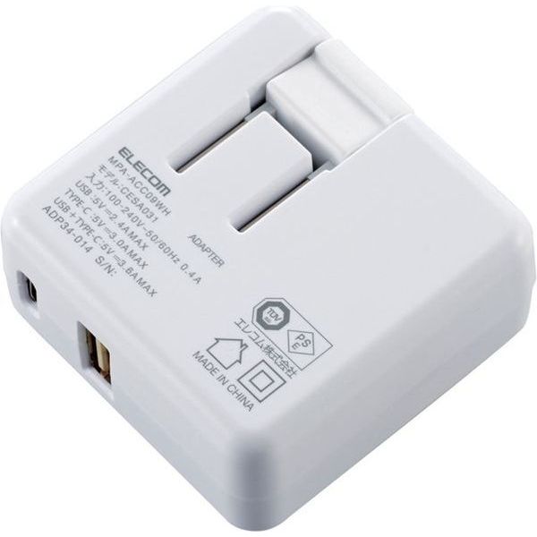 ●合計最大出力3.6Aで、USB Type-CポートとUSB Aポートを1つずつ搭載し、2台のスマートフォンを同時に高速充電できるAC充電器。