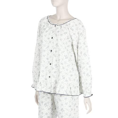 여성 기모 플라워 잠옷 얇은 기모로 따듯하게 착용가능한 여성 파자마입니다. 아이보리 계열에 잔잔한 프린트 스타일이 깨끗하며, 여성스러움을 강조한 상품입니다. 얇고 따뜻해 가볍게 착용가능하며, 여유로운 허리밴딩 라인으로 배김없이 편하게 착용 가능합니다.