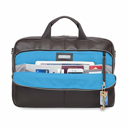 -. Feature : 15" zipped, padded laptop section / Second main compartment, for dividing up belongings efficiently / Knomad-organizer-inspired design front section containing rfid zip pocket, pen loops, card slots and detachable d-ring key chain strap / New extra-comfortable leather grab handles / 4.3x12.2x16.5