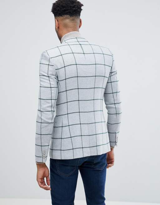 ASOS TALL Super Skinny Blazer In Gray Wool Mix With Green Windowpane Check