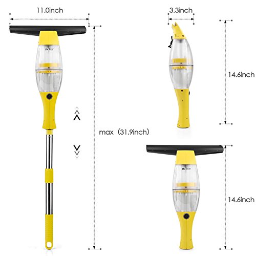 -. Title : INTEY Window Vacuum Cleaner, Window Cleaning Rechargeable Tool Kit, with Spray Bottle and Adjustable Extension Set, Yellow