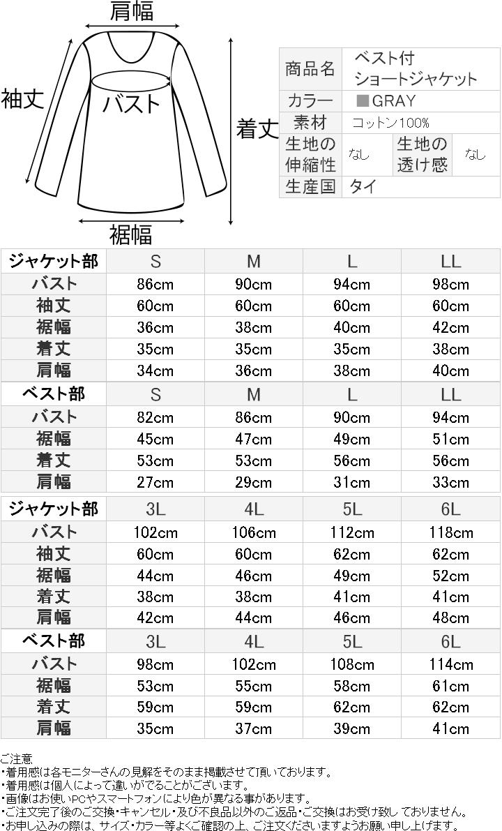 ベスト付ショートジャケット(SK) 大きいサイズ 春 セクシー レディース ギャル服 ギャル 大人 13号 15号 17号 19号 LL 2L 3L 4L 5L 6L 6L
