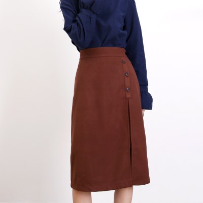 버튼 장식의 슬릿 스커트입니다~