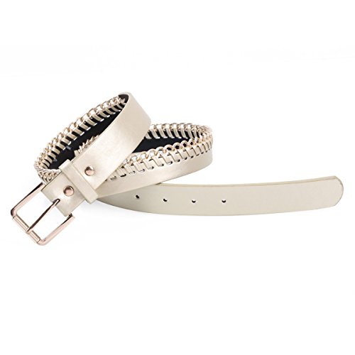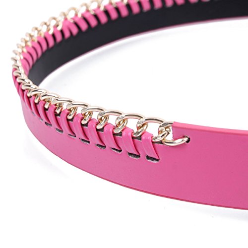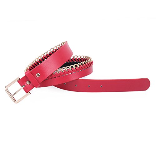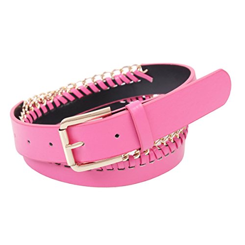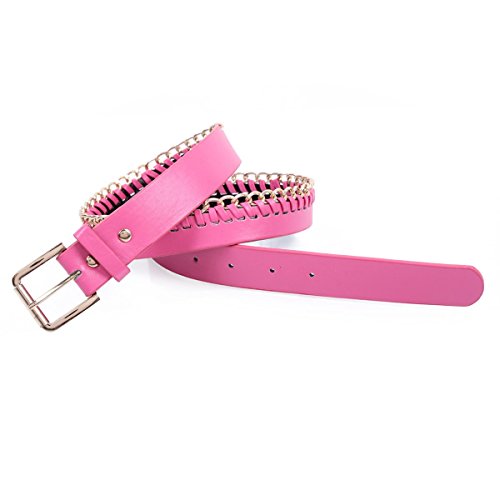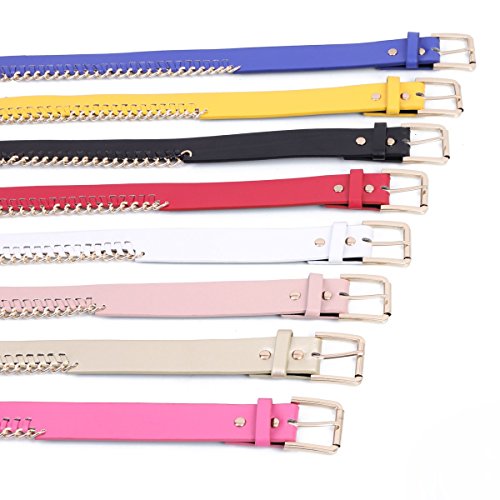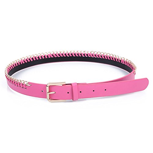 Binding : Apparel Product Description This novelty long belt is made of faux leather with many holes at the end. It has a metal golden pin buckle and is decorated with an additional chain .It's so stunning that it would be perfect decoration for your loose T-shirts ,dresses and all kinds of pants such as jeans and trousers,etc. Suitable for female at all daily occasions.The belt is adjustable, and the total Length is 98cm/38.6inches, max waist is 89cm/35.04inches,min waist is 76cm/30.0 inches.Belt Width : 2.9cm/ 1.16inches. 0