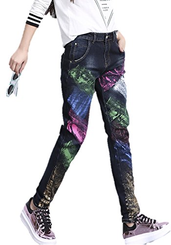 -. Title : レディース パンツ デニム ジーパン ペイント カラフルペイント スキニー 細身 スリムパンツ ダメージ ホットパンツ ロング丈 10分丈 細見せ 美脚 ストリート デザイン オシャレデニム ストレッチ 伸縮 春秋 K9390