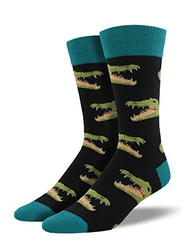 -. Binding : Apparel -. Brand : Socksmith -. Department : mens -. Feature : One pair / Crew length / Ribbed cuff / Color blocking at heel and toe / All over crocodile P.R.Int -. ProductGroup : Apparel -. ProductTypeName : SOCKSHOSIERY -. Title : Socksmith Men's Crocodile Socks