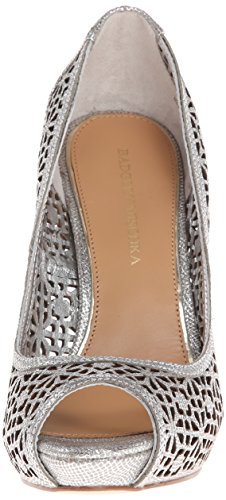Peep-toe dress pump featuring Art Deco-inspired laser cutouts and solid covering at heel and cap Partially concealed platform Brand : Badgley Mischka Item model num : Junior MPN(PartNumber) : MP2918-046 EAN : 0749908901353 Product Dimensions(LxWxH) :