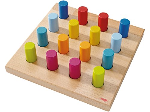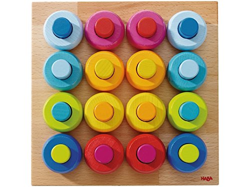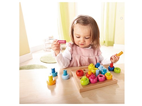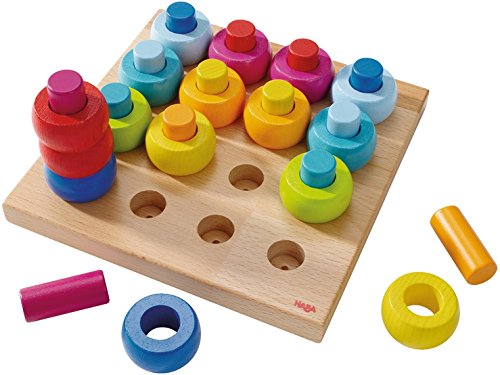 美しくカラーリングされたリングとペグ(円柱)を使って、ボード上で遊ぶおもちゃです。