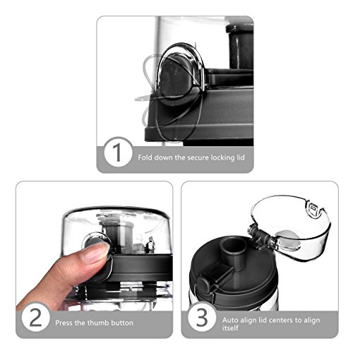 ★EASY TO USE & SIZE LARGE - Fold down the metal secure locking lid and press the thumb button,then you will drink fresh water.Large 32oz capacity gives you enough daily hydration.Flip top lid give you instant access to your infused water,large capacity reducing refilling needs.