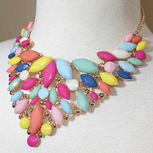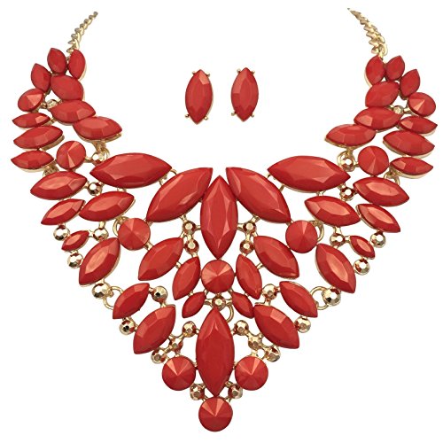 -. Title : Unique Cluster Bib Statement Boutique Style Gold Tone Necklace & Earrings Set - Assorted colors