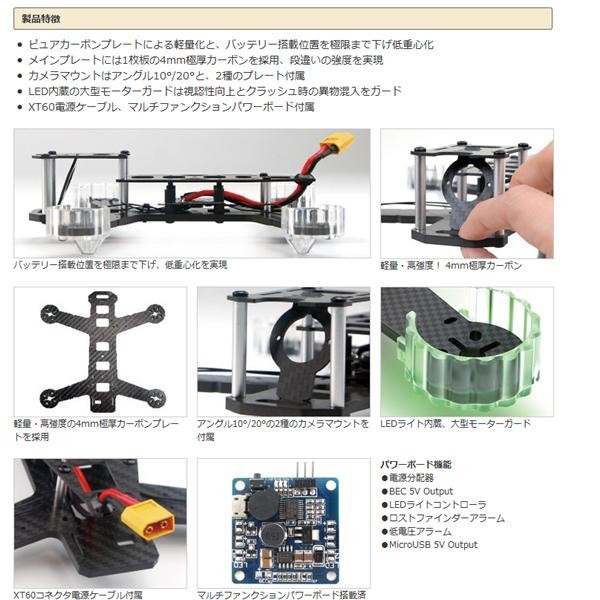 | ピュアカーボンプレートによる軽量化と、バッテリー搭載位置を極限まで下げ低重心。メインプレートには1枚板の4mm極厚カーボンを採用し、段違いの強度を実現しました。 |