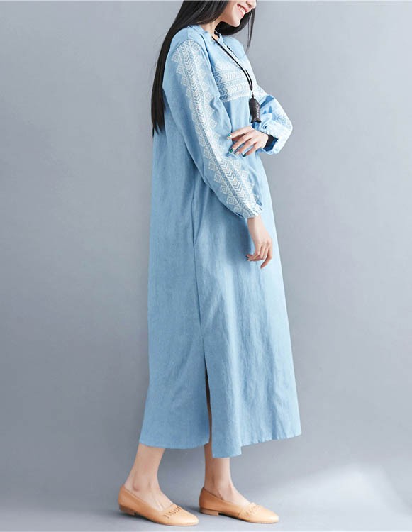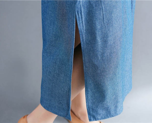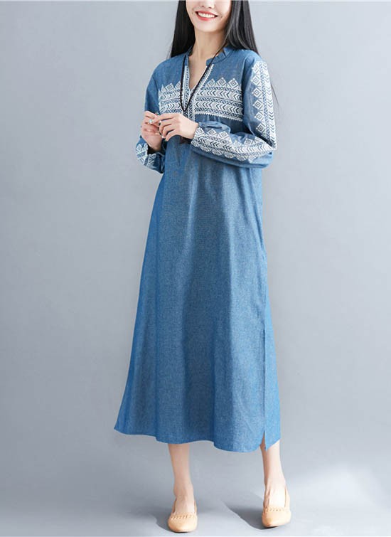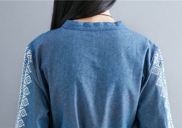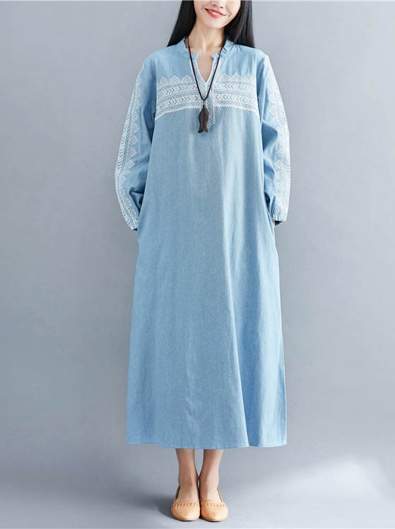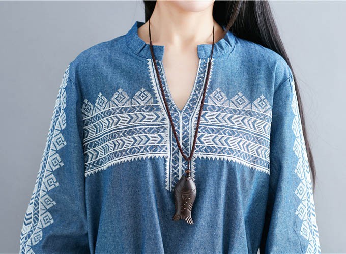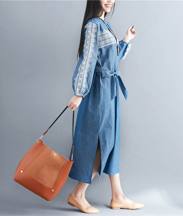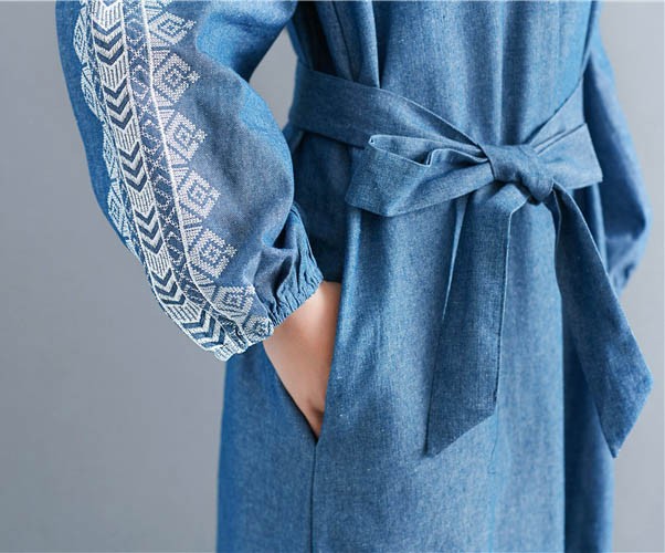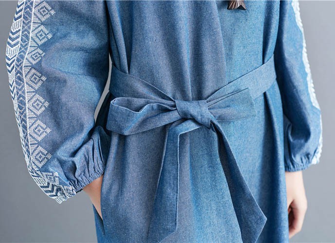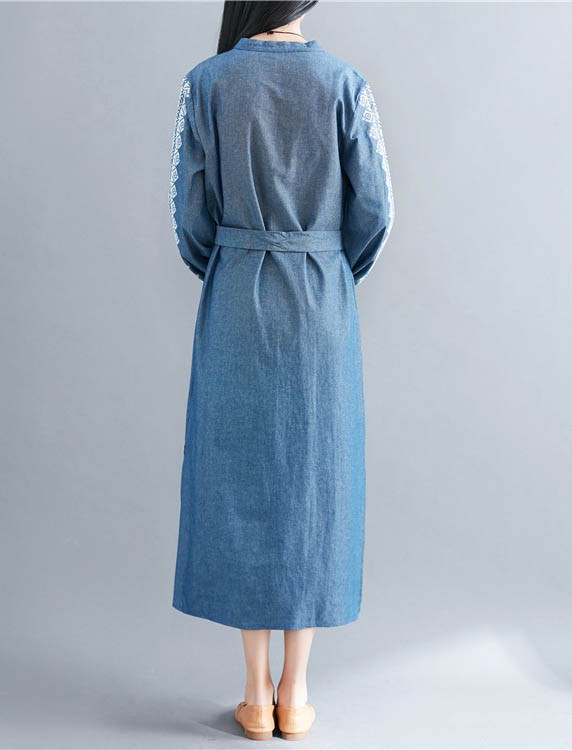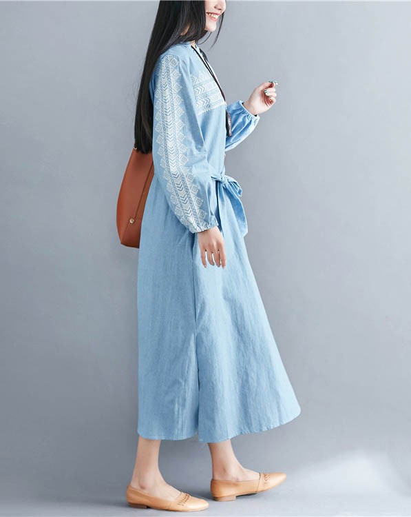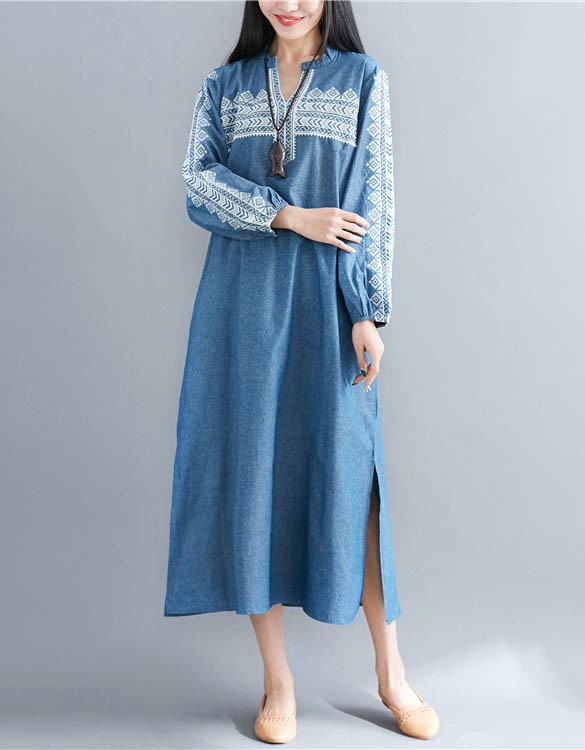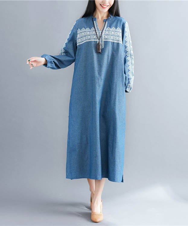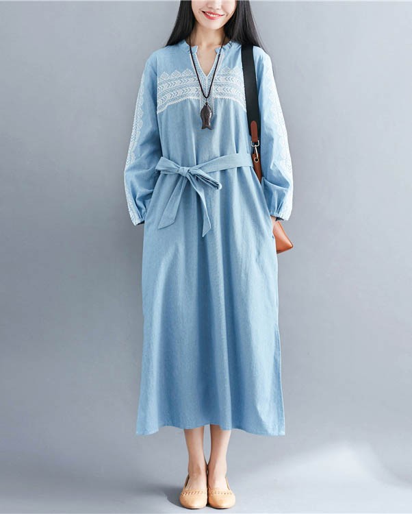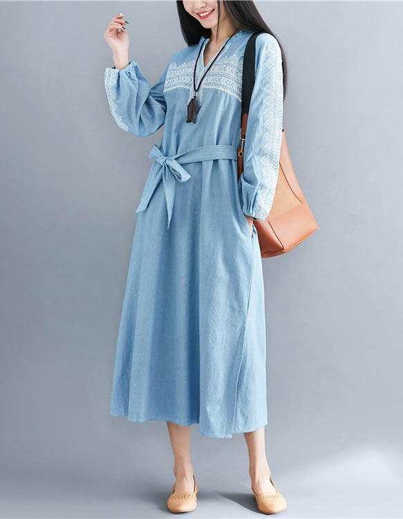 【入荷後営業日2,3日以内出荷予定 通関待ちや不良により出荷遅くなる場合はメールにてご連絡いたします。メール受信設定によっては正常に受信されない場合はございますので、 弊社からのメールを予め受信頂くようご設定くださいませ。】 ワンピ ワンピース デニムワンピ デニムワンピース 刺しゅう デニム Vネック ゆったり レディス レディース 春 新作 2018Vネックミモレ丈デニムワンピース◆サイズ:着丈118肩幅42胸囲96◆素材:コットン、ポリエステル