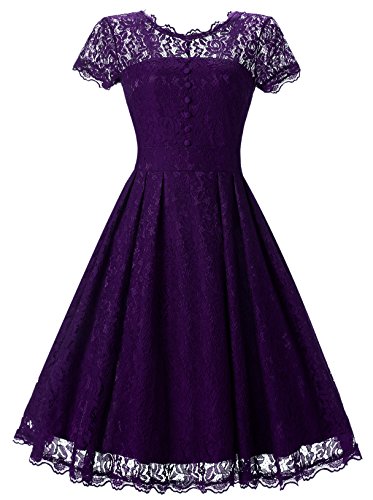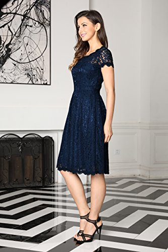 Angerella Women's Elegant Floral Lace Cap Sleeve Bridesmaid Prom Evening Dress