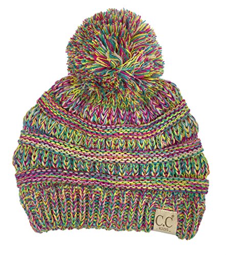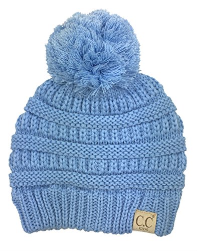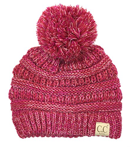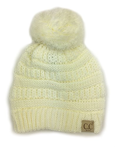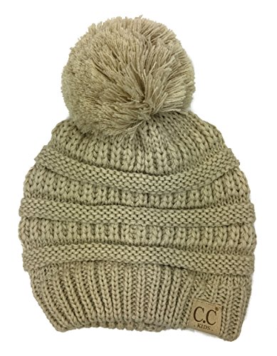 | Chunky Thick Stretchy Knit Slouch Pom Pom Beanie Cap Hat for Kids Ages 2-7 |