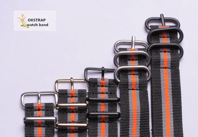 상품 내용 나일론 시계 밴드 시계 스트랩 2black-2grey-orange 304 스테인레스 스틸 버클 크기: 길이: 275-280 미리메터 폭: 18 미리메터 20 미리메터 22 미리메터 24 미리메터 DW 실버 버클