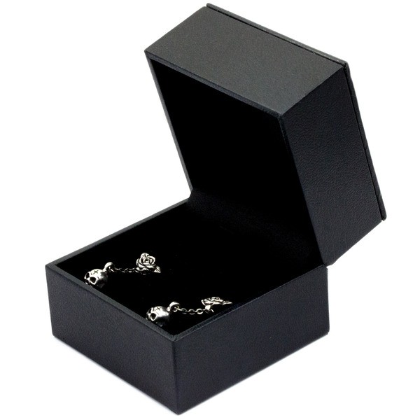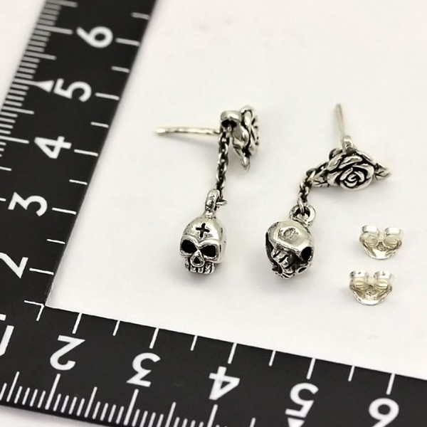 薔薇とスカルがアンバランスなRoyal Jokerローズ デス スカル ピアス。このアンバランス感がたまらなくクールなアイテム。チェーンで吊るされたスカルが一層クールさを増します。ユニセックスでつけられるユニークなピアスです。本物のシルバーだから出せる質感が堪能できるアイテムです。専用のケースが無料で付属するので、プレゼント・ギフトにとってもオススメです。