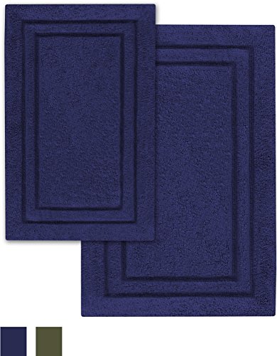 Superior 2-Pack Bath Rugs, Premium 100% Combed Cotton with Non-Slip Backing, Soft, Plush, Fast Drying and Absorbent - Navy Blue, 20" x 30" and 24" x 36" Bath Mat Set
