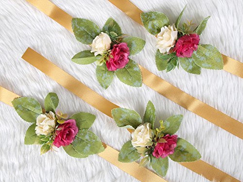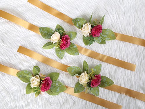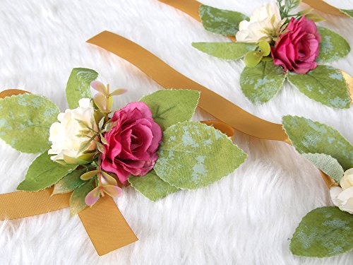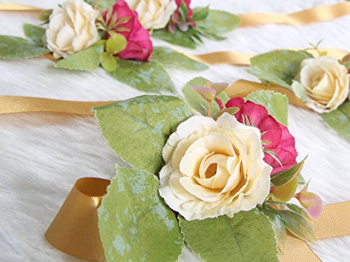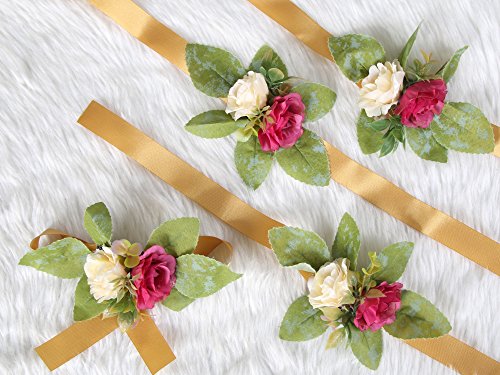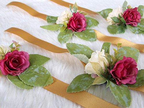 Wrist corsage flower for Prom night Wedding Bridal Bridesmaid Ceremony Party(Pack 4) (Burgundy)