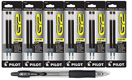 Pilot G2 Retractable Premium Gel Ink Roller Ball Pens, Ultra Fine Point, Black Ink with 6 refills