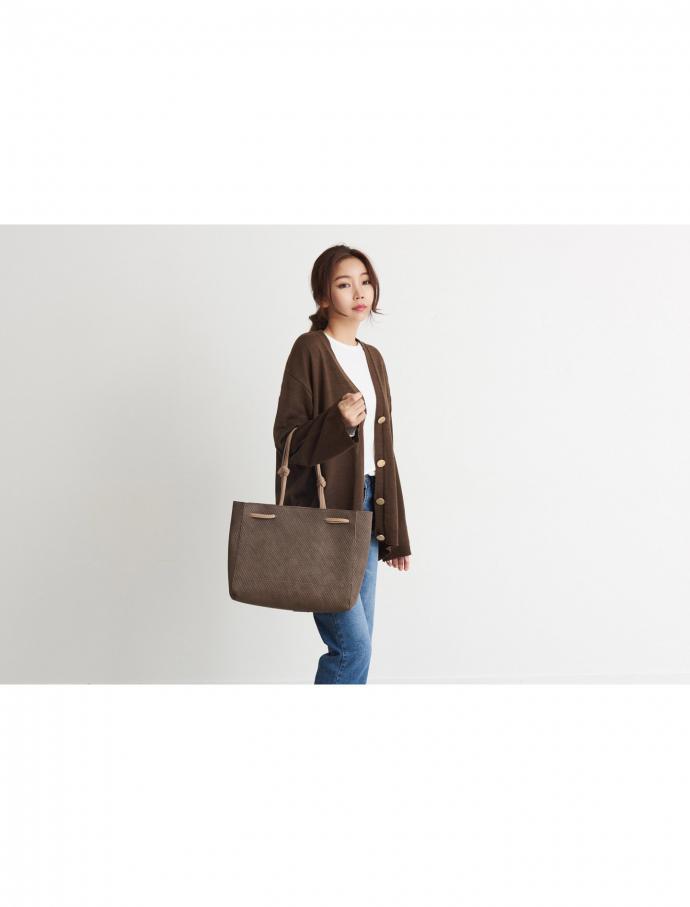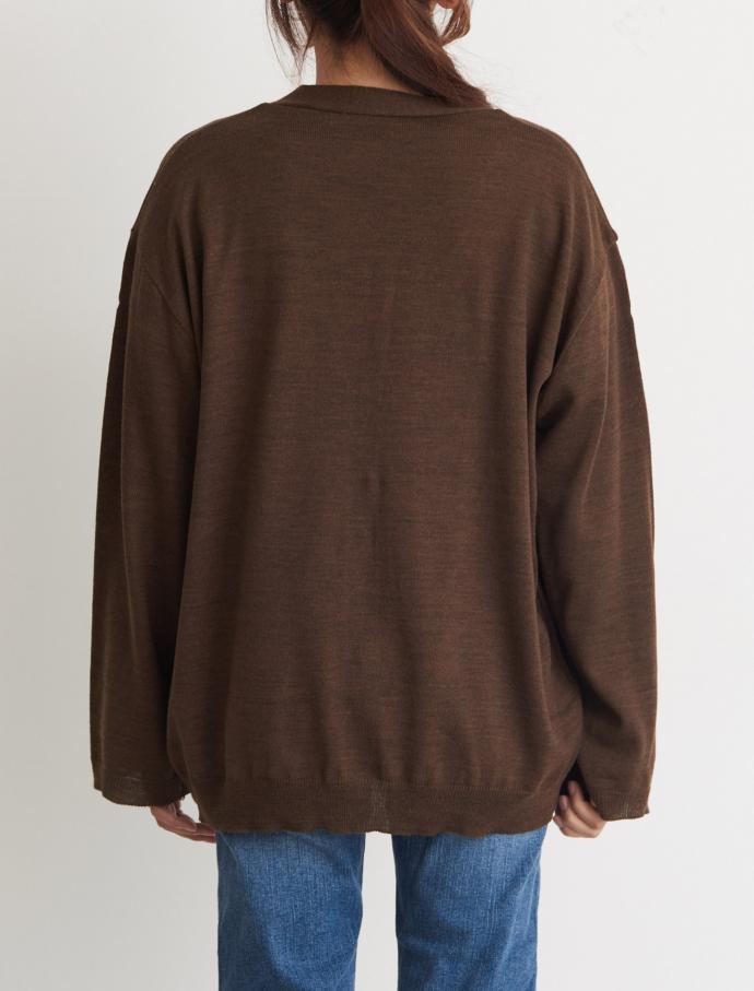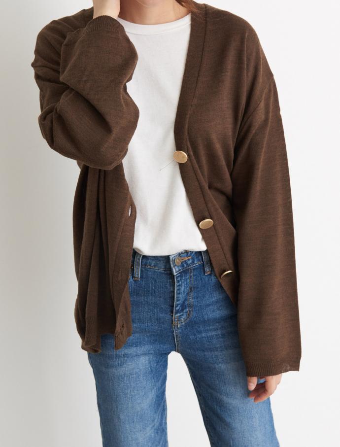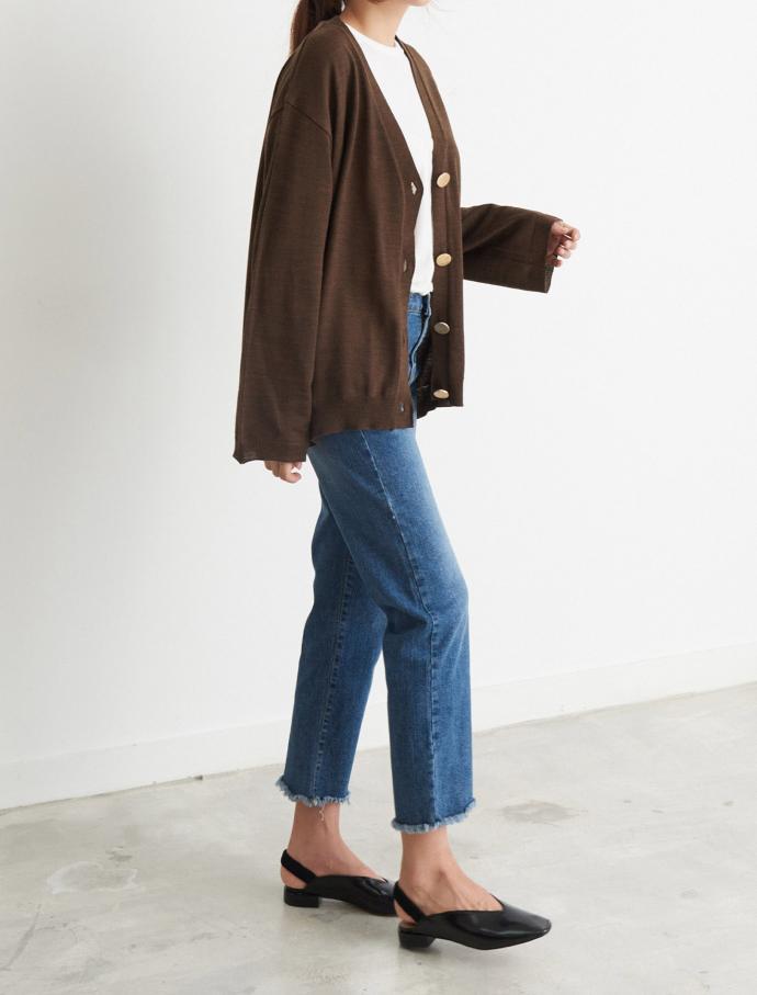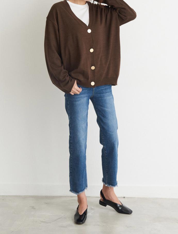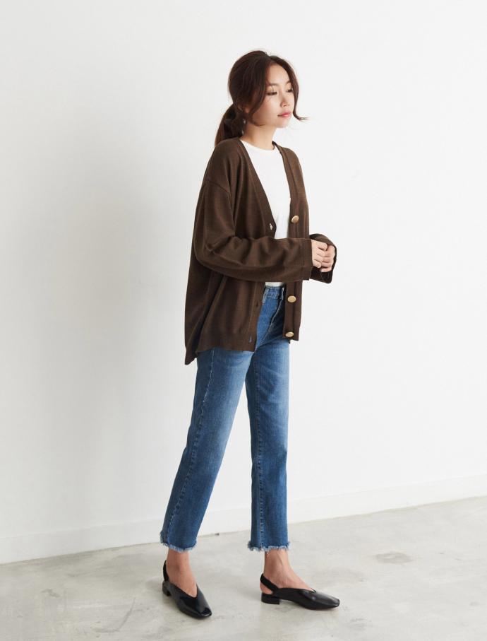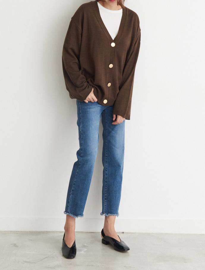 Simple wood button Y-neck knit cardigan Date coordination Soft material Stylish color Basic