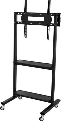 - Feature : Fits a flat-screen monitor between 32" and 80" that weighs less than 150 pounds. / VESA compatible bracket: 200x200, 400x400, 600x400, 800x400, 800x600. / Height adjustable mount with 3 fixed heights between 45.5" and 63.5" tall. / Includes 2 display shelves for storing AV equipment - great for a wireless mouse and keyboard. / Locking wheels provide mobility and stability.