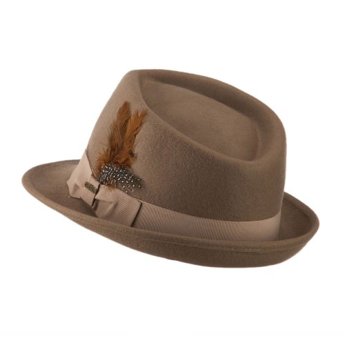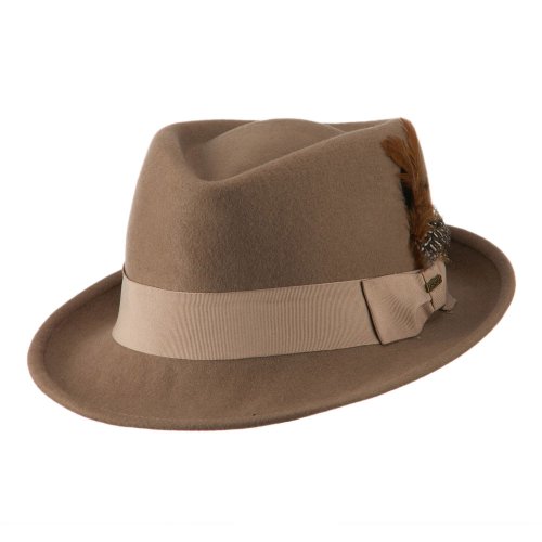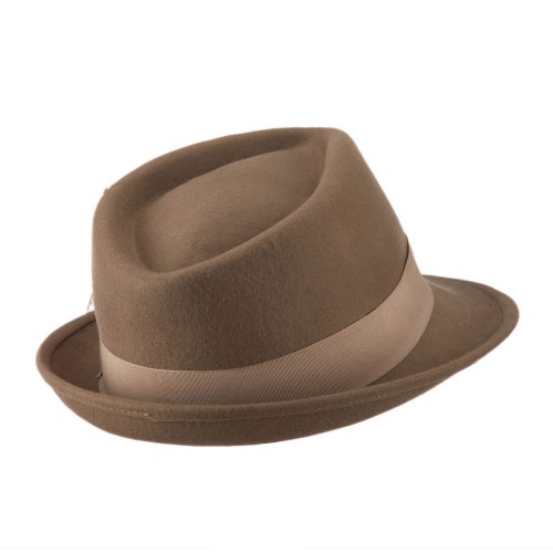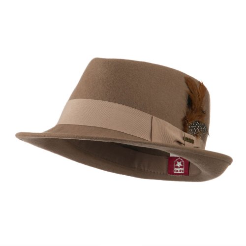 Binding : Apparel Product Description Solid colored wool fedora, with attached hatband and feather accent on the side. Crown features tear drop shaped top. Front brim is downturned and back brim is upturned. Our solid fedora is great for any type of occasion such as outdoor events, meetings and walks in the park. Fall and Winter Season. Soft, thick and warm material. 10 (W) X 10 1/2 (L) X 4 1/2(H) inches. Available in different colors and styles. 0