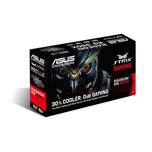 ASUS STRIX R9390X-DC3OC-8GD5-GAMING is factory-overclocked to 1070MHz and 1090MHz GPU clock in OC mode provides better gaming experience. It is equipped with Direct CU III with Triple Patented Wing-Blade Fan Design delivers max air flow with up to 30% cooler and 3X quieter performance.