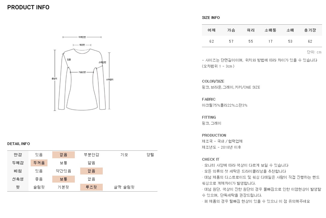 *모든 의류의 첫세탁은 드라이크리닝을 권장해드립니다*