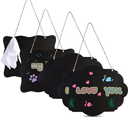 Package includes 4 pieces of chalkboard signs(2 kinds of shapes) and 1 piece of cleaning cloth