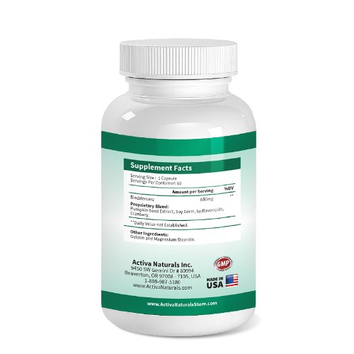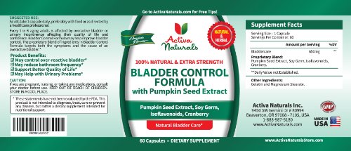 -. Binding : Health and Beauty -. Brand : Activa Naturals -. EAN : 0852675788802 -. Feature : Why Buy Our Bladder Supplement: A premium herbal supplement blended with Pumpkin Seed Extract, Soy Germ Isoflavonoids & Cranberry formulated to provide right nutrients to support Bladder health naturally / Feel the Activa Naturals Difference: Read the product reviews to see how customers are benefitting by taking our Bladder Health Support Supplement to support their bladder function / Key Product Benefits: Provide necessary nutritional support to help maintain health of Bladder Function through targeted natural & herbal vitamins, minerals and nutrients / Key Product Features: Veggie Caps, No chemicals, no fillers, no additives, manufactured in the USA, more value for money pricing with 100% peace of mind for the ingredients' purity / Outstanding Customer Support: Buy any of our products confidently as our commitment is to work with you until we find the right solution. You come first to us! -. IsAdultProduct : 0 -. Label : Activa Naturals Inc. -. LegalDisclaimer : *These statements have not been evaluated by the Food and Drug Administration. These products are not intended to diagnose, treat, cure or prevent any disease. -. Manufacturer : Activa Naturals Inc. -. MPN : Bladder Control and Care Supplement -. NumberOfItems : 1 -. PackageQuantity : 1 -. PartNumber : Bladder Control and Care Supplement -. ProductGroup : Health and Beauty -. ProductTypeName : HEALTH_PERSONAL_CARE -. PublicationDate : 2015-07-23 -. Publisher : Activa Naturals Inc. -. ReleaseDate : 2015-07-20 -. Studio : Activa Naturals Inc. -. Title : Activa Naturals Bladder Health Supplement with Pumpkin Seeds, Soy Germ Isoflavonoids & Cranberry Herbs - 60 Veg. Caps -. UPC : 852675788802