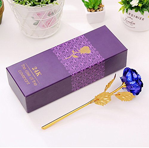 Lalago 24K Gold Artificial Rose Flowers Mother's Day Valentine's Day Birthday Gift (blue)