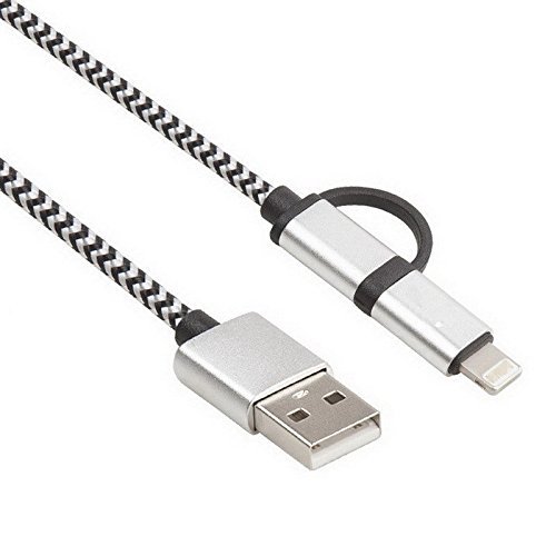 -. Title : iPhone Lightning & Android Micro USB 2 in 1 Braided Charge/Data Cable (Silver) - 3ft.
